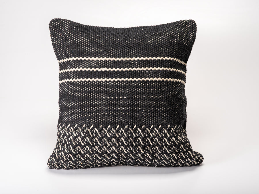 Oreiller décoratif Boho noir fait à la main 20"x 20"