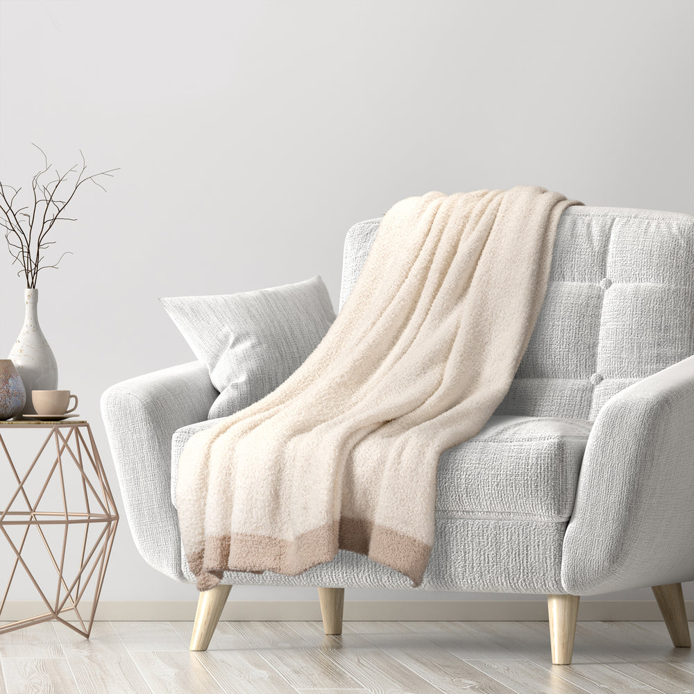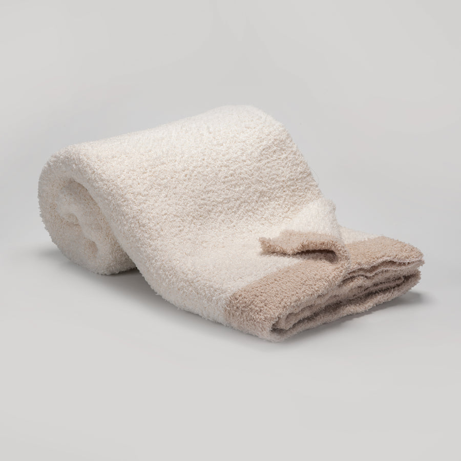 Découvrez le modèle du luxe fonctionnel avec notre couverture minimaliste en peluche blanc et taupe. Cette couverture combine sans effort la simplicité sereine d'un design minimaliste avec le confort somptueux d'un tissu moelleux, créant une touche élégante et fonctionnelle pour votre maison.