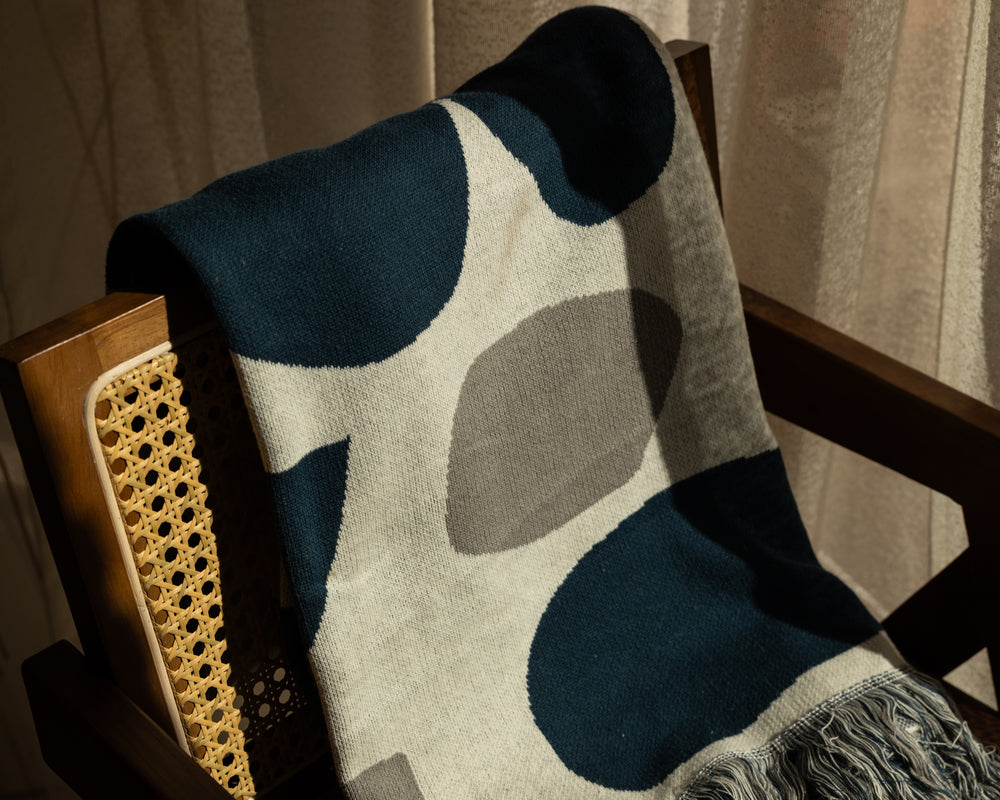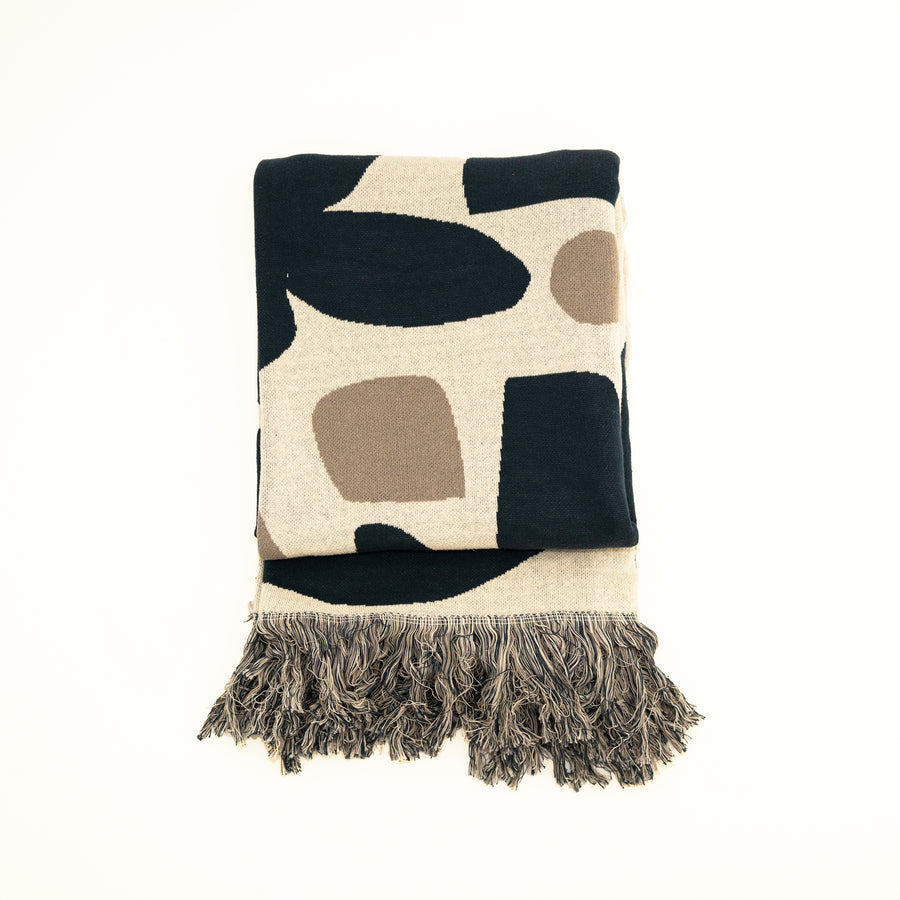 Dotée d'une délicate frange bicolore, cette couverture met en valeur un savoir-faire méticuleux et une attention aux détails. Sa texture ultra-douce offre un confort inégalé, ce qui la rend idéale pour se blottir lors d'une soirée fraîche ou pour ajouter une touche élégante à votre décoration. Qu'elle soit drapée sur votre fauteuil préféré ou utilisée comme couche supplémentaire sur votre lit, la couverture Serenity Abstract est à la fois luxueuse et pratique, rehaussant l'ambiance de votre maison avec son esthétique raffinée et sa chaleur fonctionnelle.